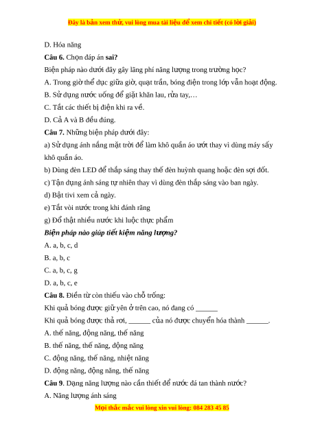 Đây là bản xem th , vu ử i lòng mua tài li u ệ đ xe ể m chi ti t ế (có l i ờ gi i ả ) D. Hóa năng Câu 6. Ch n đáp ọ án sai? Biện pháp nào dư i