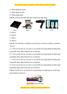 Đây là bản xem th , vu ử i lòng mua tài li u ệ đ xe ể m chi ti t ế (có l i ờ gi i ả ) B. Năng lư ng âm ợ thanh C. Năng lư ng hóa h ợ c ọ D. Năng lư ng nhi ợ t ệ Câu 10. Thi t ế bị nào bi n đ ế ổi đi n năng t ệ hành nhi t ệ năng A. Hình A B. Hình B C. Hình C D. Hình D Câu 11. Khi tr i ờ l nh, t ạ a thư ng