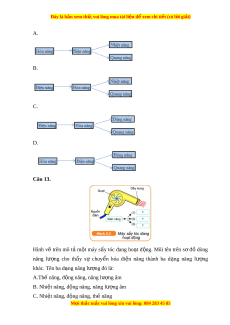 Đây là bản xem th , vu ử i lòng mua tài li u ệ đ xe ể m chi ti t ế (có l i ờ gi i ả ) A. B. C. D. Câu 13. Hình vẽ trên mô tả m t ộ máy s y ấ tóc đang ho t ạ đ ng. ộ Mũi tên trên s ơ đ ồ dòng năng lư ng ợ cho th y ấ sự chuy n ể hóa đi n ệ năng thành ba d ng ạ năng lư ng ợ khác. Tên ba d ng ạ năng lư ng đó l ợ à: A.Th năng, ế đ ng năng, năng l ộ ư ng ợ âm B. Nhi t ệ năng, đ ng năng, ộ năng lư ng âm ợ C. Nhi t ệ năng, đ ng năng, ộ th năng ế M i
