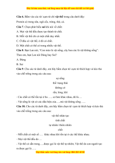 Câu 8. Bạn Lan nói, “Con mèo là vật sống, cây hoa cúc là vật không sống”.