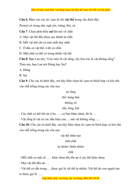 vào chỗ trống trong các câu sau: sự sống thể/ trạng thái không có rắn, lỏng, khí