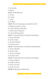 Câu 15. Vật thể nhân tạo là A. con trâu. B. con sông. C. xe đạp. D. con người.