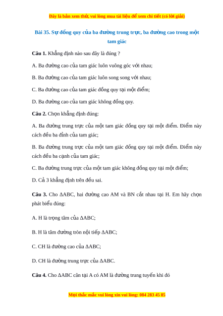 Đây là bản xem th , vu ử i lòng mua tài li u ệ đ xe ể m chi ti t ế (có l i ờ gi i ả ) Bài 35. S đ ự ng q ồ uy c a ba đ ủ ư ng t ờ rung tr c, ba đ ự ư ng cao t ờ rong m t ộ tam giác Câu 1. Kh ng đ ẳ