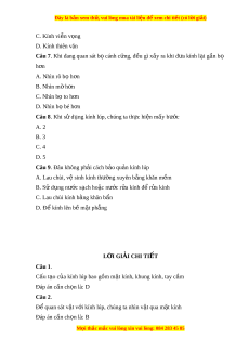 Câu 9. Đâu không ph i ả cách b o qu ả n ả kính lúp A. Lau chùi, v s ệ inh kính thư ng xuyên b ờ ng ằ khăn m m ề B. S d ử ng n ụ ước s ch ho ạ c ặ nư c r ớ a kí ử nh đ r ể a kí ử nh C. Lau chùi kính b ng khăn ằ b n ẩ D. Đ kí ể nh lên b m ề t ặ ph ng ẳ L I Ờ GIẢI CHI TI T Ế Câu 1. Cấu t o c ạ a ủ kính lúp bao g m ồ m t