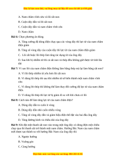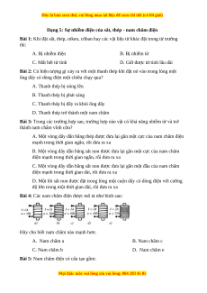 Bài 1: Khi đặt sắt, thép, niken, côban hay các vật liệu từ khác đặt trong từ trường thì: A. Bị nhiễm điện B. Bị nhiễm từ C. Mất hết từ tính
