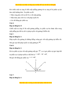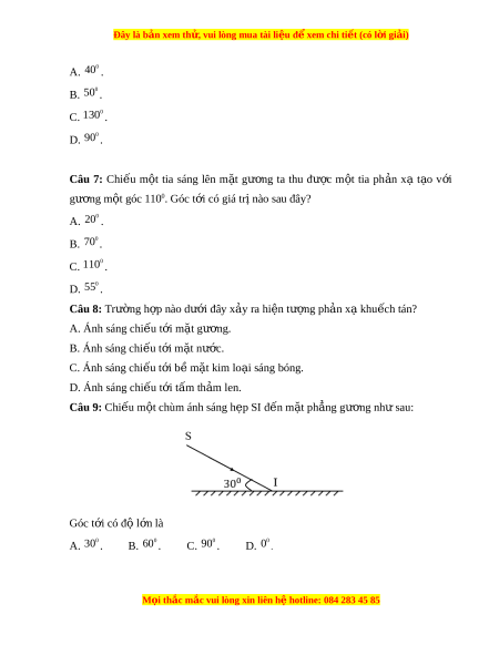 Đây là bản xem th , vu ử i lòng mua tài li u ệ đ xe ể m chi ti t (c ế ó l i ờ gi i ả ) A. 0 40 . B. 0 50 . C. 0 130 . D. 0 90 . Câu 7: Chi u ế m t ộ tia sáng lên m t ặ gư ng ơ ta thu đư c ợ m t ộ tia ph n ả xạ t o ạ v i ớ gư ng m ơ t ộ góc 1100. Góc t i