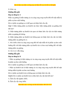 Đây là bản xem th , vu ử i lòng mua tài li u ệ đ xe ể m chi ti t (c ế ó l i ờ gi i ả ) B. C. D. Hư ng d ớ ẫn gi i ả Đáp án đúng là: D Hi n t ệ ư ng ph ợ n ả x ánh ạ sáng có thể x y r ả a trên các b m ề t ặ nh n ẵ bóng. A – m t ặ gư ng, ơ là b ề m t ặ nh n ẵ bóng nên có th ể x y ả ra hi n ệ tư ng ợ ph n ả x ạ ánh sáng. B – m t ặ đá hoa, là b ề m t ặ nh n ẵ bóng nên có th ể x y ả ra hi n ệ tư ng ợ ph n ả x ạ ánh sáng. C – m t ặ nư c ớ ph ng ẳ l ng, ặ là bề m t ặ nh n ẵ bóng nên có thể x y ả ra hi n ệ tư ng ợ ph n ả x ánh s ạ áng. D – m t ặ gi y ấ , không ph i ả bề m t ặ nh n