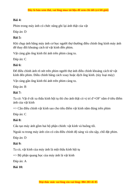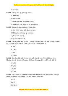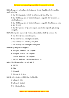 Bài 9: Bộ phận quang học của máy ảnh là: A. Vật kính B. Phim C. Buồng tối D. Bộ phận đo độ sáng
