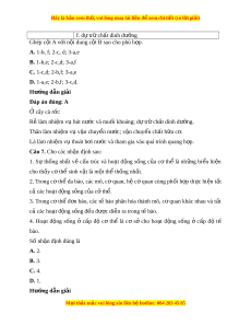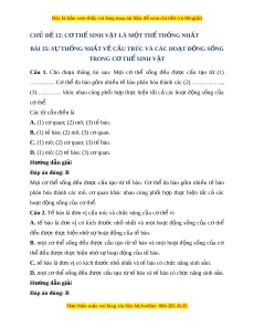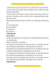 phân hóa thành các mô, cơ quan khác nhau cùng ph i ố h p ợ th c ự hi n ệ t t ấ cả các ho t ạ đ ng s ộ ống c a ủ c t ơ h . ể Câu 2. T bào ế là đ n v ơ c ị u t ấ rúc và ch c ứ năng c a ủ c t ơ h vì ể A. tế bào là đ n ơ vị có kích thư c ớ nhỏ nh t ấ và m i ọ ho t ạ đ ng ộ s ng ố c a ủ cơ thể đ u đ ề ược th c hi ự n nh ệ s ờ ự ho t ạ đ ng ộ c a t ủ bào. ế B. m i ọ cơ thể s ng ố đ u ề đư c ợ c u ấ t o ạ t ừ t ế bào và m i ọ ho t ạ đ ng ộ s ng ố c a ủ cơ th đ ể u ề đư c t ợ h c hi ự n nh ệ s ờ ho ự t ạ đ ng ộ c a t ủ bào. ế C. t bào ế là đ n v ơ có kí ị ch thư c nh ớ ỏ nh t