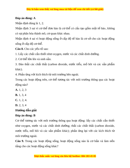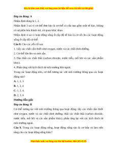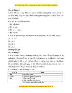 Đây là bản xem th , vu ử i lòng mua tài li u ệ đ xe ể m chi ti t (c ế ó l i ờ gi i ả ) Đáp án đúng: A Cơ thể đ n ơ bào có đ c ặ đi m ể chỉ g m ồ m t ộ tế bào nh ng ư th c ự hi n ệ đư c ợ t t ấ cả các ho t ạ đ ng ộ s ng ố c a ủ m t ộ cơ thể nhờ sự ph i ố h p ợ gi a ữ các thành ph n ầ c u ấ trúc c a t ủ ế bào. Câu 5. Cho các h c ệ q ơ uan sau: 1. Hệ tuần hoàn 2. Hệ hô hấp 3. Hệ cơ và xư ng ơ 4. Hệ bài ti t ế Các h c ệ quan t ơ ham gia ph i ố h p vào ợ ho t ạ đ ng ch ộ y ạ th d ể c h ụ ng ằ ngày là A. 1, 2, 3, 4. B. 1, 2, 3. C. 2, 3, 4. D. 1, 3, 4. Hư ng d ớ ẫn gi i ả Đáp án đúng: A
