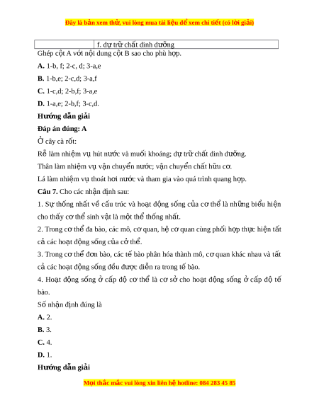 Đây là bản xem th , vu ử i lòng mua tài li u ệ đ xe ể m chi ti t (c ế ó l i ờ gi i ả ) f. d t ự r ch ữ ất dinh dư ng ỡ Ghép c t ộ A v i ớ n i ộ dung c t ộ B sao cho phù h p. ợ