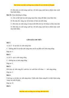 C - không phải là sự trộn ánh sáng màu mà là sự phân tích ánh sáng trắng Đáp án: C Bài 2: