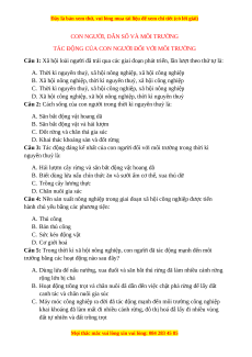 Trắc nghiệm Tác động của con người đối với môi trường Sinh học 9