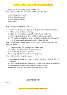 Câu 13: Để góp phần vào việc bảo vệ tốt môi trường, một trong những điều cần