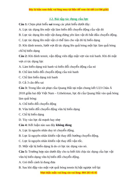Đây là bản xem th , vu ử i lòng mua tài li u ệ đ xe ể m chi ti t ế (có l i ờ gi i ả ) J.2. B ài tập tác d ng c ụ a l ủ c ự Câu 1: Ch n ọ phát bi u