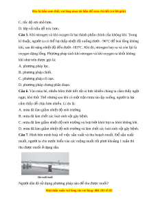 Câu 5. Khí nitrogen và khí oxygen là hai thành ph n chí ầ nh c a ủ không khí. Trong kĩ thu t ậ , ngư i ờ ta có th h ể t ạ h p nhi ấ t ệ đ xu ộ ng d ố ư i ớ - 96°C đ hoá ể l ng không ỏ khí, sau đó nâng nhi t ệ đ đ ộ n đ ế ư i