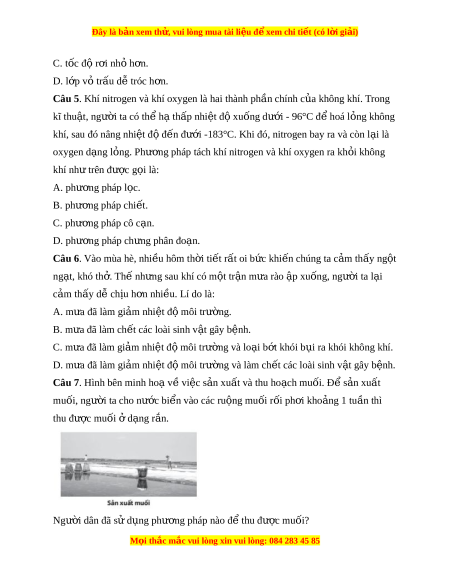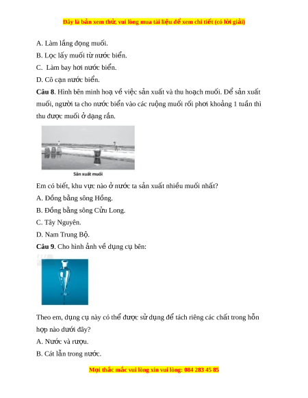 Đây là bản xem th , vu ử i lòng mua tài li u ệ đ xe ể m chi ti t (c ế ó l i ờ gi i ả ) A. Làm l ng đ ắ ng ọ mu i ố . B. L c l ọ ấy muối t n ừ ư c ớ bi n. ể C. Làm bay h i ơ nư c bi ớ n. ể D. Cô c n n ạ ư c ớ bi n. ể