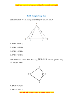 Bài 2. Tam giác b ng nhau ằ Câu 1: Cho hình v s ẽ au. Tam giác nào b ng v ằ i ớ tam giác ABC? A. ∆ABC = ∆EDA; B. ∆ABC = ∆EAD; C. ∆ABC = ∆AED; D. ∆ABC = ∆ADE.
