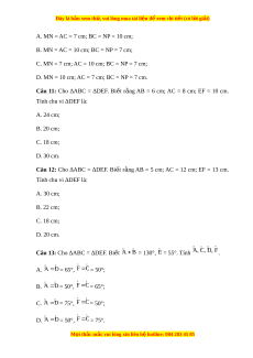 Câu 11: Cho ∆ABC = ∆DEF. Bi t r ng AB = 6 cm; AC = 8 cm; EF = 10 cm.ế ằ