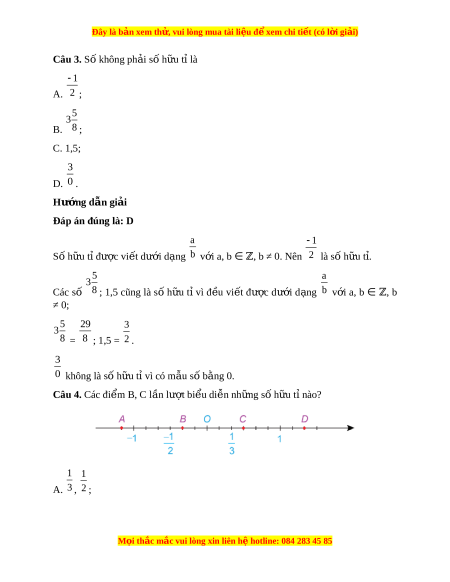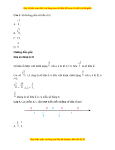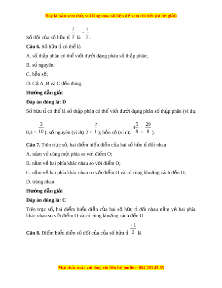 Đây là bản xem th , vu ử i lòng mua tài li u ệ đ xe ể m chi ti t (c ế ó l i ờ gi i ả ) 7 7 Số đối c a ủ s h ố u t ữ ỉ 2 là 2 . Câu 6. Số h u t ữ ỉ có th l ể à A. số th p ậ phân có th vi ể t ế dư i ớ d ng phân s ạ t ố h p ậ phân; B. số nguyên; C. hỗn số; D. C ả A, B và C đ u đúng ề . Hư ng d ớ ẫn gi i ả Đáp án đúng là: D Số h u ữ t ỉcó th ể là số th p ậ phân có th ể vi t ế dư i ớ d ng ạ phân s ố th p ậ phân (ví dụ 3 2 5 29 3