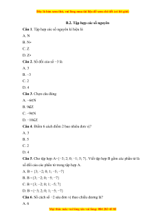 Nên tập hợp B ={3; −2; 0; 1; −5; −7} Đáp án cần chọn là: A Câu 6.