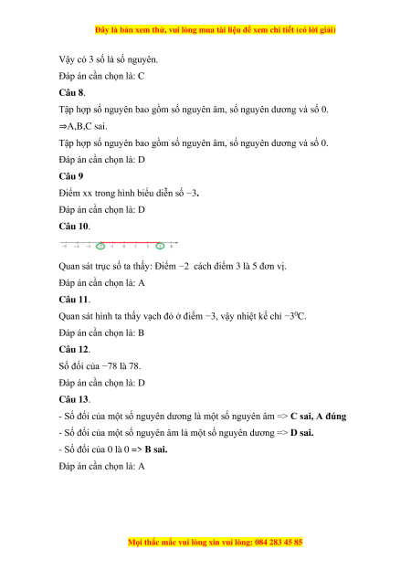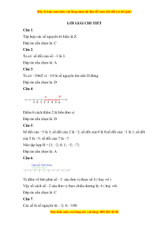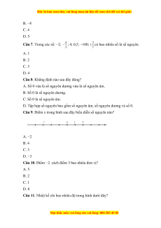 Vậy số cách số −2 sáu đơn vị theo chiều dương là: 4 ( hay +4) Đáp án cần chọn là: C Câu 7.