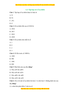 Câu 5. Phát biểu nào sau đây đúng? A. Nếu x∈N thì x∉N∗ B. Nếu x∈N thì x∈N∗ C. Nếu x∉N∗ thì x∉N D. Nếu x∈N∗ thì x∈N
