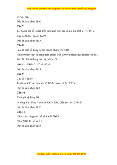 IV có giá trị bằng 4 nên số XXIV biểu diễn số 10+10+4=24 Đáp án cần chọn là: D Câu 11.