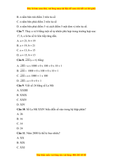 Câu 10. Số La Mã XXIV biểu diễn số nào trong hệ thập phân? A. 26 B. 16 C. 14 D. 24