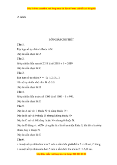 Số tự nhiên liền sau số 2018 là số 2018 + 1 = 2019. Đáp án cần chọn là: C Câu 3.