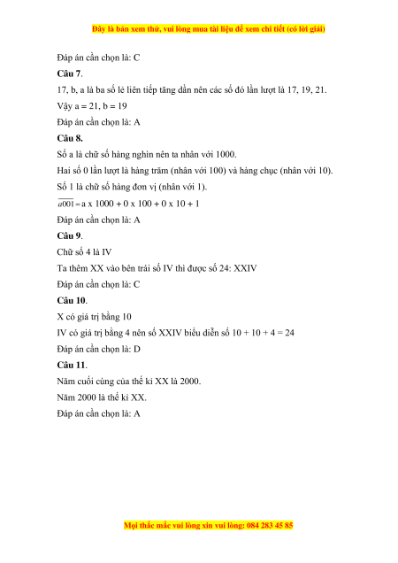 Câu 11. Năm 2000 là thế kỉ bao nhiêu? A. XX B. XIX C. XXI