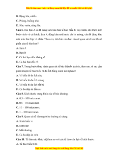 Câu 9. Quan sát tế bào người ta thường sử dụng A. Kính hiển vi B. Kính lúp C. Mắt thường D. Cả ba đáp án trên
