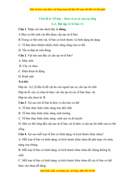 G.1. Bài tập về tế bào (1)