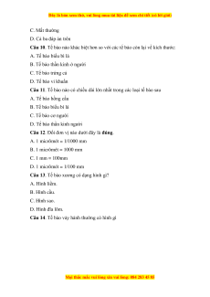 Câu 10. Tế bào nào khác biệt hơn so với các tế bào còn lại về kích thước: A. Tế bào biểu bì lá