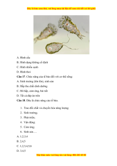 Câu 17. Chức năng của tế bào đối với cơ thể sống: