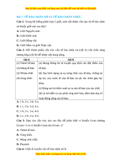 C. Giúp tăng tốc đ s ộ inh trư ng, ở phat tri n và s ê inh s n a c a t ủ bào. ế D. Đ m a b o s a t ự ruy n ề đ t ạ thông tin di truy n chi ề nh xac qua cac th h ế t ệ bào. ế Câu 15: T i ạ sao th c ự v t ậ có kha năng quang h p ơ còn đ ng ộ v t ậ không có kha năng này? A. Vì t ế bào th c ự v t ậ có ch a ư bào quan l c ụ l p ạ còn t ế bào đ ng ộ v t ậ không có lo i ạ bào quan này. B. Vì t ế bào th c ự v t ậ có ch a ư thành tế bào còn t ế bào đ ng ộ v t ậ không có thành t bào. ế C. Vì t ế bào th c ự v t ậ có ch a
