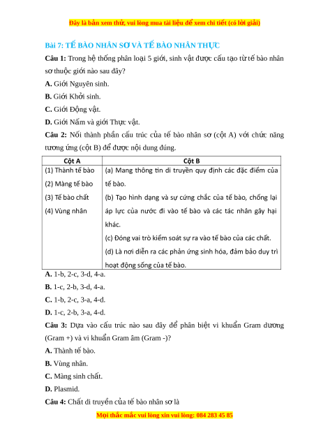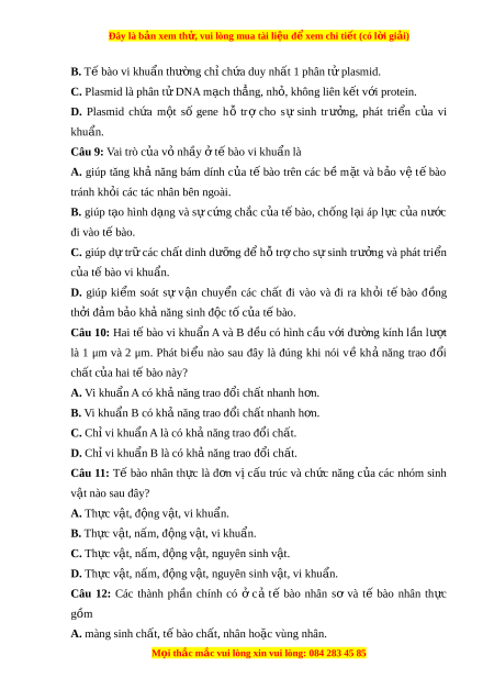 Đây là bản xem th , vu ử i lòng mua tài li u ệ đ xe ể m chi ti t ế (có l i ờ gi i ả ) B. T bào ế vi khu n t ẩ hư ng ơ ch ch i a duy nh ư t ấ 1 phân t pl ử asmid.