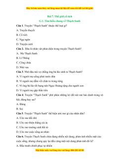 Câu 1. Truyện “Thạch Sanh” thuộc thể loại gì? A. Truyền thuyết B. Cổ tích C. Ngụ ngôn D. Truyện cười