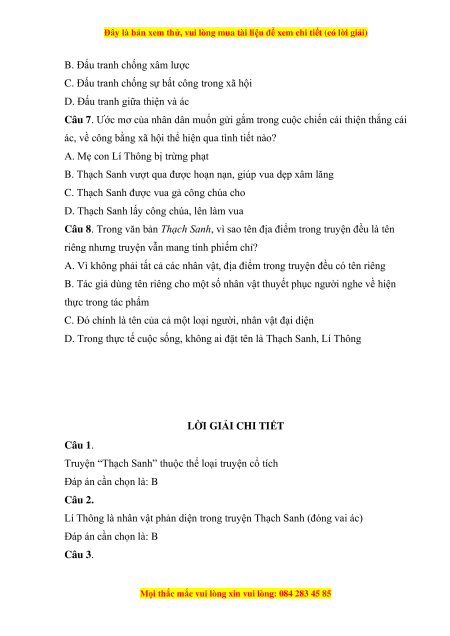 Câu 5. Truyện “Thạch Sanh” thể hiện ước mơ gì của nhân dân? A. Ước mơ đổi đời