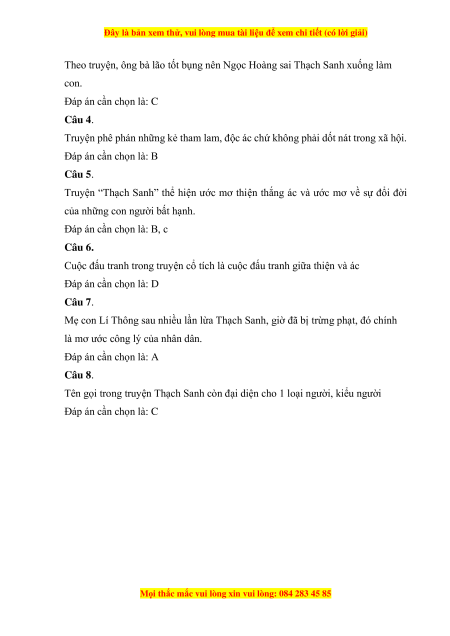 Câu 6. Truyện Thạch Sanh chứa đựng nhiều nội dung, phản ánh nhiều mặt của