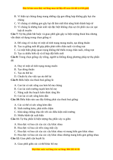 Câu 2: Hiện tượng xuất hiện ở thế hệ sau nếu thực hiện tự thụ phấn bắt buộc ở cây