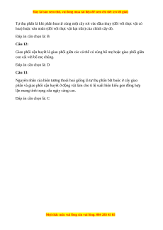 - Củng cố, duy trì đặc tính mong muốn - Tạo dòng thuần Đáp án cần chọn là: A Câu 8: