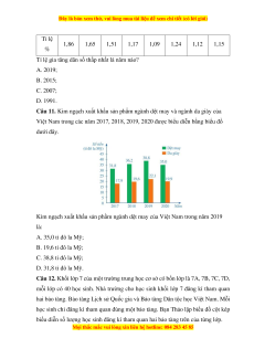 Câu 10. Tỉ lệ tăng dân số Việt Nam trong một số năm gần đây được cho trong bảng sau: Năm 1991 1995 1999 2003 2007 2011 2015 2019