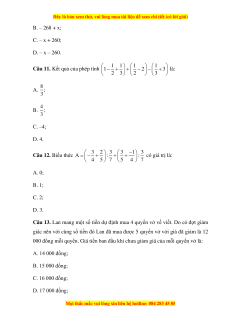 Câu 12. Biểu thức A = − + : + + : có giá trị là: 4 5 7 5 4 7 A. 0; B. 1; C. 2; D. 3.