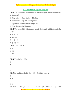 Câu 1. Thứ tự thực hiện phép tính nào sau đây là đúng đối với biểu thức không
