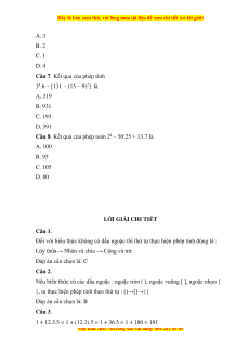Lũy thừa→ Nhân và chia → Cộng và trừ Đáp án cần chọn là: C Câu 2.