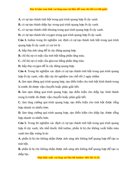 Đây là bản xem th , vu ử i lòng mua tài li u ệ đ xe ể m chi ti t (c ế ó l i ờ gi i ả ) A. có sư t o t ạ hành tinh b t ộ trong quá trinh quang h p ơ cây xanh. ở B. có s t ư o ạ thành di p l ệ c