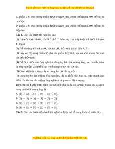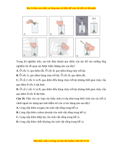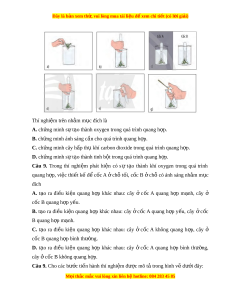 Câu 6. Cho các bư c t ớ hí nghi m ệ sau: (1) Đ t ặ cốc A ở chỗ t i ố , c c ố B ch ở ỗ có ánh sáng tr c ư ti p ế ho c ặ đ ể dư i ớ ánh đèn 4 - 8 gi . ờ (2) Đô kho ng 400 m ả