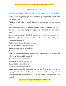 Đây là bản xem th , vu ử i lòng mua tài li u ệ đ xe ể m chi ti t (c ế ó l i ờ gi i ả ) BÀI 31: TH C Ự HÀNH CH N Ứ G MINH THÂN V N Ậ CHUY N Ể NƯ C Ớ VÀ LÁ THOÁT H I Ơ NƯ C Ớ Câu 1. T i ạ sao trong thí nghi m ệ ch ng ứ minh thân v n ậ chuy n ể nư c ớ nên l a ự ch n ọ hoa có màu tr ng? ắ