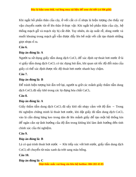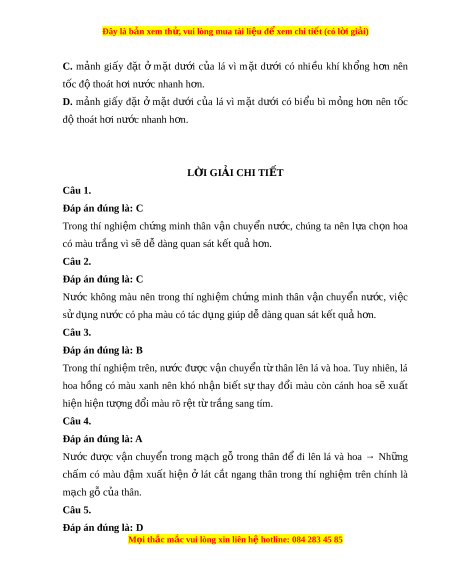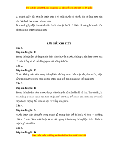 Đây là bản xem th , vu ử i lòng mua tài li u ệ đ xe ể m chi ti t (c ế ó l i ờ gi i ả ) C. m nh a gi y â đ t ặ ở m t ặ dư i ớ c a u lá vì m t ặ dư i ớ có nhi u ề khí kh ng ổ h n ơ nên tôc đ t ô hoát h i ơ nư c ớ nhanh h n. ơ D. m nh a gi y â đ t ặ ở m t ặ dư i ớ c a u lá vì m t ặ dư i ớ có bi u ể bì m ng ỏ h n ơ nên t c ô đ t ô hoát h i ơ nư c ớ nhanh h n. ơ LỜI GIẢI CHI TI T Ế Câu 1.